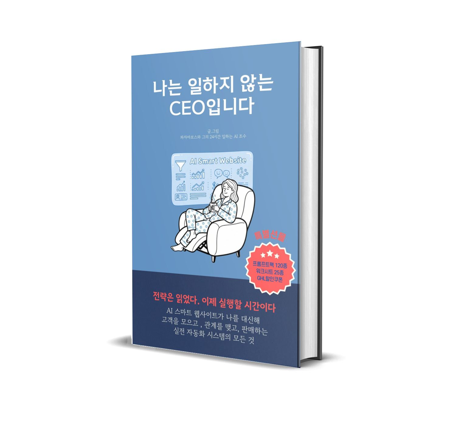 《나는 일하지 않는 CEO입니다》 는 당신을 다시 ‘맞는 일’로 데려갑니다: 고객의 진짜 문제를 찾아내고, 그 여정을 설계하며ㅡ AI 프롬프트로 바로 실행하게 만드는 책입니다.